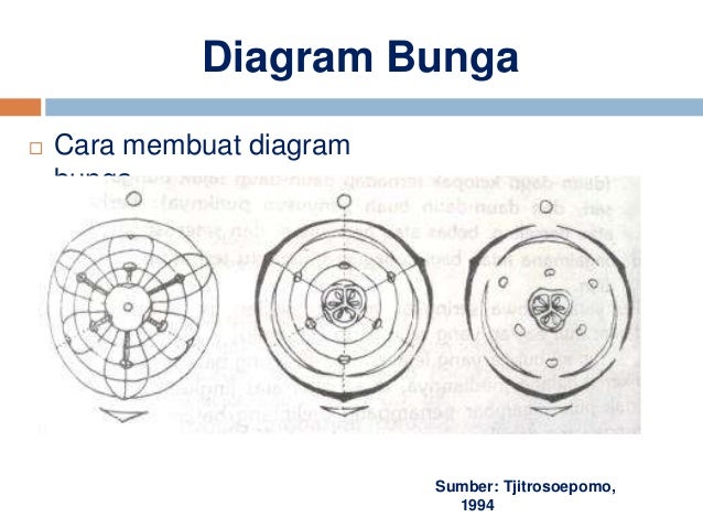 06 10 2012 Yang dinamakan diagram bunga ialah suatu gambar proyeksi pada bidang datar dari semua komponen bunga yang dipotong melintang jadi pada diagram itu di gambarkan penampang penampang melintang daun daun kelopak tajuk bunga benang sari dan putik juga komponen komponen lainnya bila masih terdapat disamping keempat komponen pokok tersebut perlu diperhatikan bahwa lazimnya dari daun daun